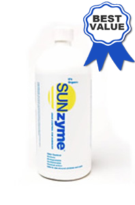 Sunzyme Stain & Odor Control is a natural blend of 5 different enzymes that are safe and effective for the elimination of organic stains and odors. Sunzyme is safe to use around people and pets (non-toxic, biodegradable, non-flammable.)